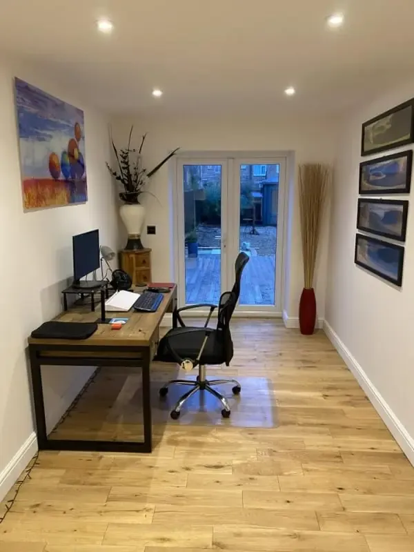 Natural light is key here, so replacing the garage door with glazed panels or adding rooflights can transform the space. Insulation is equally important to keep the temperature stable for year-round working. Many homeowners also add acoustic plasterboard to block street noise and keep Zoom calls calm.