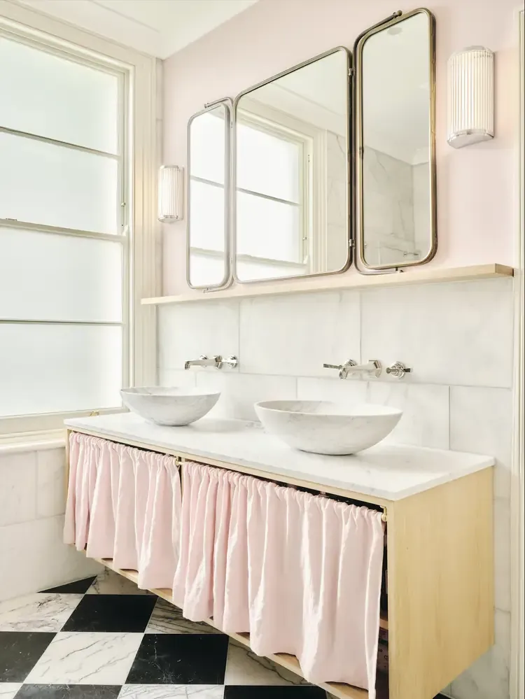 Why this works: bathrooms often have limited windows, and reflective surfaces act as an affordable substitute for extra glazing. Mirrors also disguise awkward angles, making rooms feel balanced. For the cost, few other design features offer such a big impact.