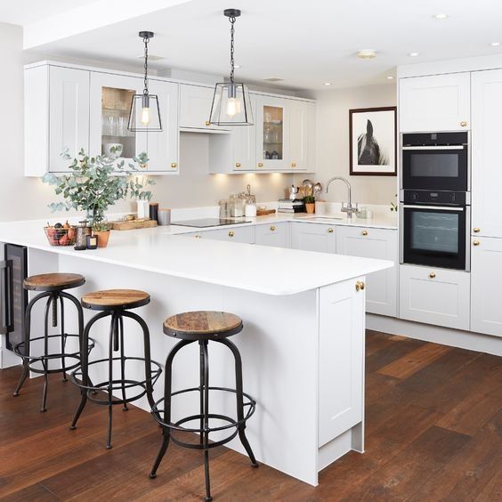 While more of a peninsula, Mollie’s quartz worktop helps divide up her kitchen and dining space, adding a breakfast area to make it multi-functional. She opted for a dove-grey shade to lighten up her kitchen space and chose a quartz counter in bright white.